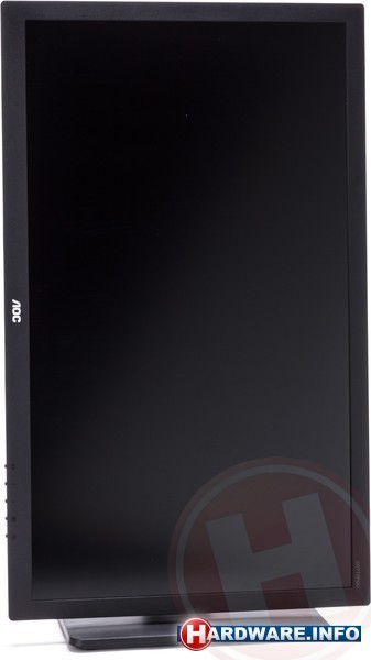 AOC heeft de monitor voorzien van een sober uiterlijk, met relatief grote bezels. Het is hiermee duidelijk op de zakelijke markt gericht, waar het extra omhulsel ervoor zorgt dat het paneel tegen een stootje kan en men niet zit te wachten op een al te frivool voorkomen. De enige concessie aan design is een geborsteld metaalpatroon aan de achterkant en in de voet, die overigens grotendeels van plastic is. Liefhebbers van een no-nonsense ontwerp zullen het waarderen, wie houdt van wat meer elegantie vindt er wellicht het zijne van.