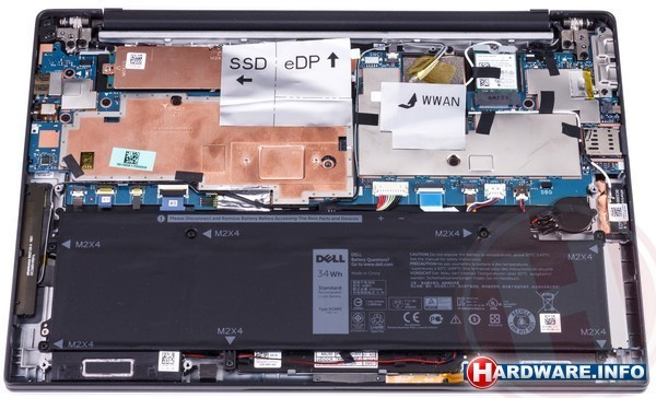 Ook het werkgeheugen is vastgesoldeerd op het moederbord en dat is 8 GB groot en Dell maakt gebruik van DDR3 1866-geheugen. Een van de weinige onderdelen die wel eenvoudig te vervangen is in de Dell is de SSD. Voor ons testmodel had Dell gekozen voor een Toshiba XG3 256 GB grote NVMe SSD.