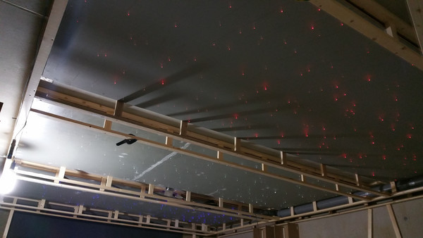 We bouwen het sterrenplafond uit drie delen, elk met een eigen lichtmodule en 200 glasvezels.
