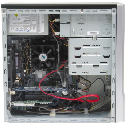 Het kloppend hart is een AMD Athlon 64 3400+, deze uitvoering van de 64-bits processor van AMD is voorzien van een Socket 754 aansluiting en heeft dus geen dual channel geheugentoegang zoals die in de Socket 939 uitvoering van deze processor aanwezig is. Toch zijn de prestaties van dit systeem prima in orde. De processor staat in verbinding met 512 MB DDR400 geheugen, van het merk BIT4RAM. Het moederbord is afkomstig van Gigabyte, het is een K8VM800M, een moederbord met de VIA K8M800 chipset aan boord. Deze chipset erft veel van de mogelijkheden van de wat bekendere K8T800 chipset maar voegt daar een geïntegreerde grafische kaart aan toe. Die wordt overigens niet gebruikt in dit systeem van QMotion en de aansluiting is op de achterzijde van de kast dan ook afgeplakt met een barcode.