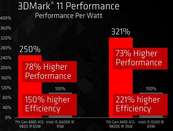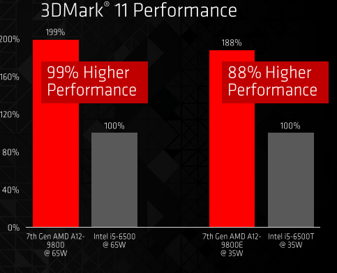 In 3DMark 11 zouden de AMD-processors zelfs veel beter presteren dan Intel-processors met een vergelijkbare TDP: