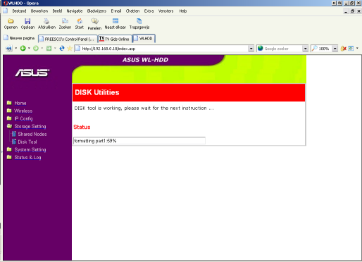 Ook het formatteren van de harde schijf vanuit de web browser is geen probleem voor de ASUS WL-HDD.