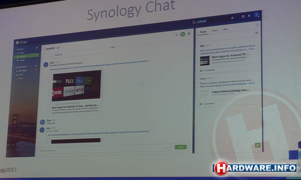 Ook op een ander vlak timmert Synology aan de weg, want men gaat een eigen chat-functionaliteit toevoegen. Dat is een alternatief voor de verschillende chatmogelijkheden die er zijn. Het is grappig dat je de chatdienst ook kunt koppelen aan event-gebaseerde internetdiensten als Github en IFTTT. Ook kun je de chatfuncties gebruiken om samen te werken met de officeprogrammatuur van Synology. Voor bedrijven is het aantrekkelijk dat de nieuwe chatfuncties van Synology encryptie ondersteunen.