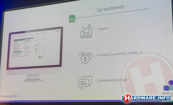Veelzijdig zijn NAS-apparaten zeker. Als je bedenkt dat dit ooit begonnen is als eenvoudige fileserver dan hebben deze apparaten een enorme groei doorgemaakt. Een van de belangrijkste veranderingen van het afgelopen jaar is de toevoeging van Spreadsheet geweest. Spreadsheet wordt nu uitgebreid met de mogelijkheid om grafieken te maken en met valuta te werken. Synology gaat nu ook een tekstverwerker toevoegen. Daarnaast wordt de functionaliteit ook verrijkt met een agenda. Daarmee wordt het langzaam maar zeker een echt alternatief voor de diensten van Google en Microsoft.