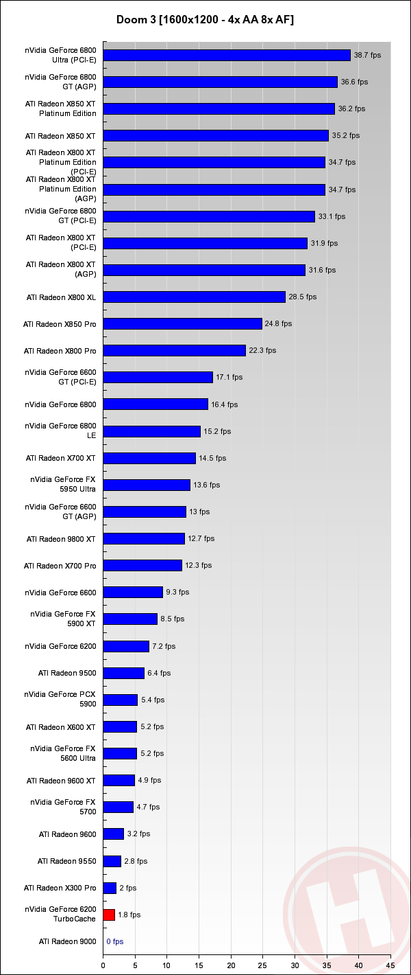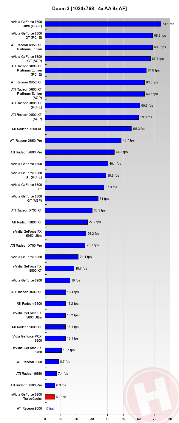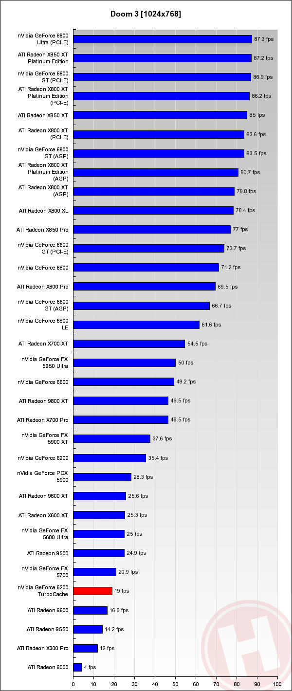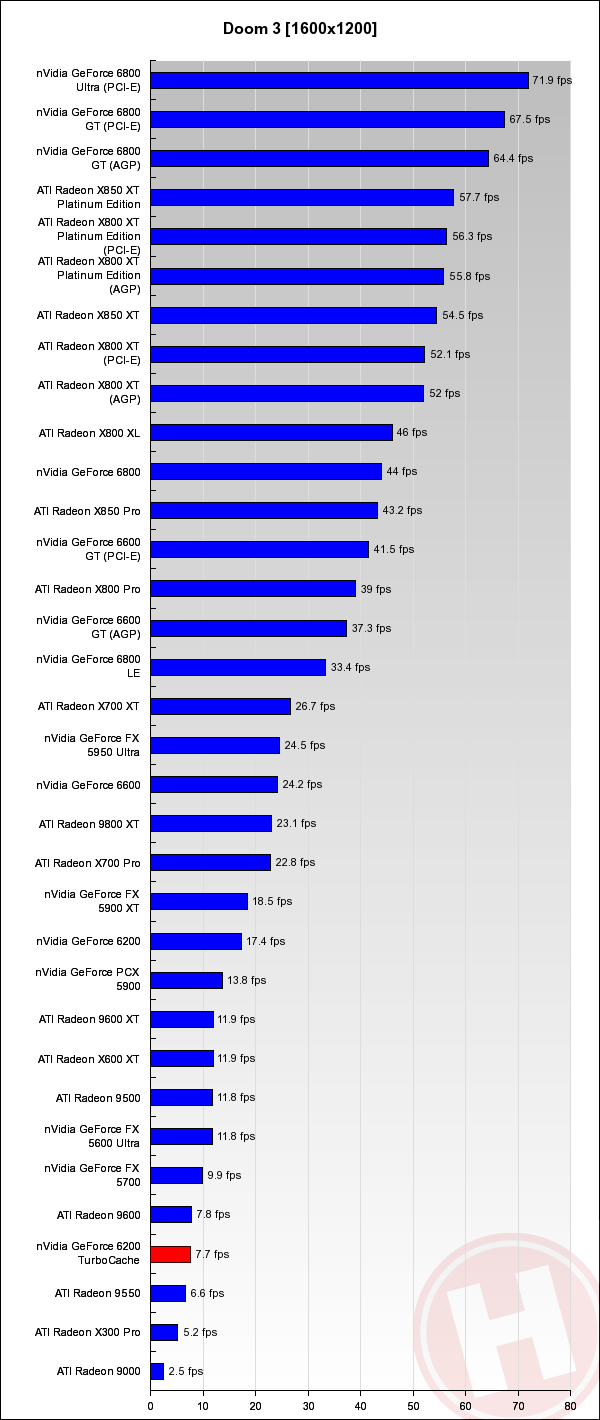 Point-of-View (nVidia) GeForce 6200 TurboCache Test Koen Crijns 14 februari 2005 10:44 Inhoudsopgave 1. TurboCache 2. Point-of-View GeForce 6200 TurboCache 64 / 256 MB 3. Conclusie 4. Benchmarks: 3DMark03 5. Benchmarks: 3DMark05 6. Grafieken: Doom 3 7. Benchmarks: FarCry 8. Benchmarks: Half-Life 2 9. Benchmarks: Tomb Raider: Angel of Darkness 10. Benchmarks: Unreal Tournament 2004 Grafieken: Doom 3 Volgende pagina: 7. Benchmarks: FarCry Advertentie