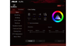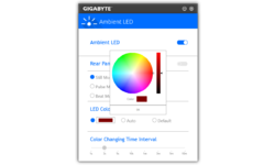 We hebben ook de software van Gigabyte getest, in combinatie met het X99-Designare EX-moederbord. Deze is duidelijk wat simpeler van opzet en kent maar drie effecten: constant aan, pulseren en bewegen op de muziek. Uiteraard kun je ook de kleuren en de snelheid instellen. Hoewel Gigabyte nog een inhaalslag moet maken als het om de functionaliteit gaat, werkt de software wel erg prettig. Vooral de kleurenkiezer, die in tegenstelling tot de Aura-software wijzigingen direct doorvoert, vinden we beter dan bij de concurrent.