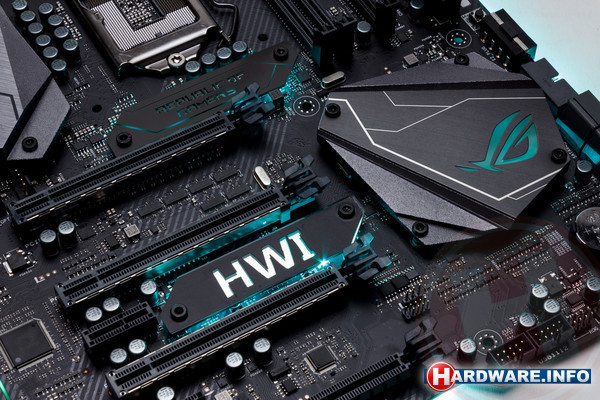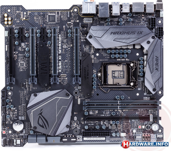 Dan de stroomvoorziening, die afwijkt van die van de andere ROG-moederborden van deze generatie. Waar de andere ASUS-borden die we tot dusver hebben getest het moeten doen met een Digi+ ASP1400 PWM-controller, is de Apex uitgerust met de ASP1405 (hoogstwaarschijnlijk de IR35201, een als goed bekendstaande controller die vaak voorkomt op high-end overklokborden). Deze was standaard bij de vorige generatie ROG-borden, terwijl de ASP1400 werd gebruikt voor non-ROG borden zoals de Z170 Pro Gaming, maar inmiddels is hij grotendeels uitgefaseerd. Aangezien de Apex specifiek bedoeld is als overklokbord, heeft ASUS hem toch uitgerust met de betere controller. De gebruikte MOSFETs zijn identiek aan die van de andere Maximus-borden, namelijk de erg goede 87350D van Texas Instruments.