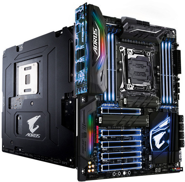 X299 moederborden komen er in alle soorten en maten, zoals bijvoorbeeld dit kleurrijke moederbord van Gigabyte.