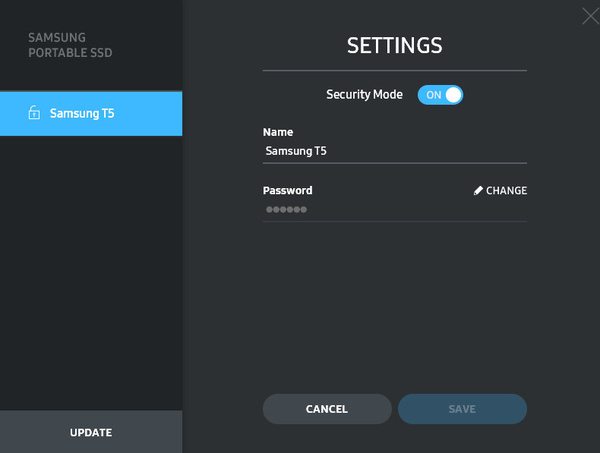 Voor die doelgroep is de aanwezigheid van hardwarematige encryptie ook een pre. Zeker met het in werking treden van de nieuwe Europese wetgeving op het gebied van bescherming van (persoons)gegevens in mei van 2018 is het voor bedrijven nog belangrijker om zorgvuldig om te springen met gegevens van derden. In geval van verlies of diefstal moet de aanwezigheid van de encryptie enige geruststelling bieden, al is het voor ons helaas niet mogelijk de implementatie en effectiviteit van de versleuteling te beoordelen. Via de Samsung software die voor Windows, MacOS en Android beschikbaar is, kun je een wachtwoord toevoegen. Die software vraagt ook om het wachtwoord als de T5 aan je computer, tablet of telefoon koppelt.