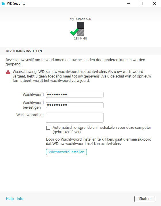 De WD My Passport bevat 256 bit AES-encryptie.