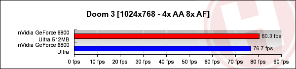 nVidia GeForce 6800 Ultra 512MB Test Eric van Ballegoie 18 juli 2005 13:21 Inhoudsopgave 1. Het ontwerp 2. AOpen Aeolus 6800Ultra-DVD512 3. MSI NX6800Ultra-T2D512E 4. XFX GeForce 6800 Ultra 512 MB 5. Vergelijkingstabel 6. Mosterd na de maaltijd? 7. Conclusie 8. 256 vs 512: 3DMark03 9. 256 vs 512: 3DMark05 10. 256 vs 512: Doom 3 11. 256 vs 512: FarCry 12. 256 vs 512: Aquamark 3 13. 256 vs 512: Half-Life 2 14. 256 vs 512: Chronicles of Riddick 15. 256 vs 512: Unreal Tournament 2004 16. 256 vs 512: SPEC Viewperf 8.1 256 vs 512: Doom 3 Volgende pagina: 11. 256 vs 512: FarCry Advertentie