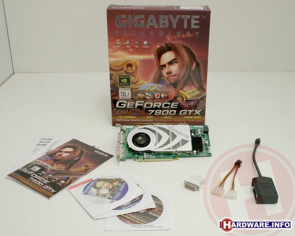 Gigabytes GeForce 7800 GTX lijkt eveneens als twee druppels water op nVidia's referentiekaart, al heeft men wel de letters 'GIGABYTE' op de koeler geplakt. De kaart wordt geleverd in een stijlvolle donkerrode doos, waarin we onder andere weer de bekende breakout box met alle extra videoaansluitingen vinden. Als DVD-software bundelt Gigabyte de nieuwe 6-versie van Cyberlink PowerDVD. Daarnaast vinden we in de doos ook Cyberlink PowerDirector 3 ME en twee games: Joint Operations Typhoon Rising en XR Xpand Rally. Gigabytes GeForce 7800 GTX gaat over de toonbank voor een adviesprijs van € 549.