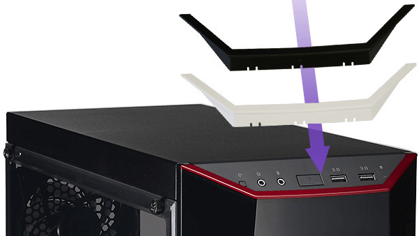 Hoewel de Masterbox Lite 5 behuizingen qua prijs duidelijk in het instapsegment zitten, is Cooler Master erin geslaagd om de kasten toch een fraai uiterlijk te geven. Uiterlijk zijn beide behuizingen vrijwel identiek, en op het eerste gezicht lijken ze zelfs geheel gelijk. Een nadere blik laat echter zien dat het doorzichtige zijpaneel van de RGB-versie iets dikker is en opgetrokken is uit gehard glas, terwijl de standaardversie het moet doen met een plexiglas zijpaneel. Beide kasten hebben een plexiglasvoorpaneel dat op het eerste gezicht ondoorzichtig is, maar een een donkere rookglas-afwerking heeft waar wel degelijk licht doorheen kan schijnen. Cooler Master levert de standaard Masterbox 5 Lite met rode accentstrips aan de boven- en onderkant van het voorpaneel, terwijl deze bij de Masterbox 5 Lite RGB in zwart zijn uitgevoerd. Beide kasten worden echter geleverd met verwisselbare strips in de kleuren rood, wit en zwart. Voor mensen met een 3D printer zijn er bovendien stl- en stp-files van de inserts beschikbaar op de website van Cooler Master, zodat je ze zelf in elke denkbare kleur kan printen, eventueel in combinatie met eigen aanpassingen aan het ontwerp.