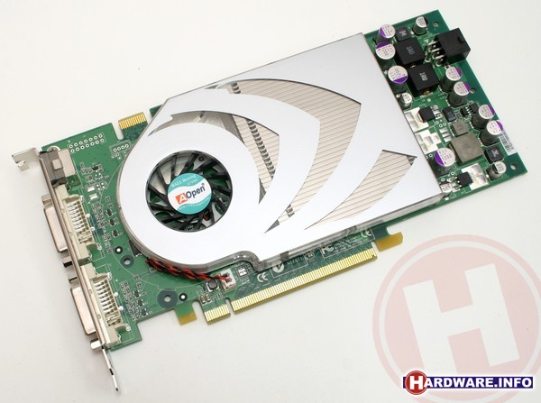 De AOpen Aeolus 7800GT-DVDC256 is te herkennen aan de AOpen-stikker midden op de ventilator. Hoewel AOpen net als alle andere fabrikanten gebruik maakt van de GeForce 7800 GT referentiekaart, is er een belangrijk verschil te vinden. De Aeolus kaart is standaard immers een stuk sneller geklokt dan de referentie GeForce 7800 GT: de core werkt op 430 MHz in plaats van 400 MHz en het geheugen op 550 MHz in plaats van 500 MHz. Dit alles zorgt ervoor dat AOpen samen met XFX (die hun kaart ook standaard overklokken) aan top gaat in de benchmarks. Verder overklokken ging ook prima met deze kaart: we kregen de core op 499 MHz en het geheugen op 615 MHz, goed voor een 3DMark05 score die hoger is dan van een niet-overklokte GeForce 7800 GTX.