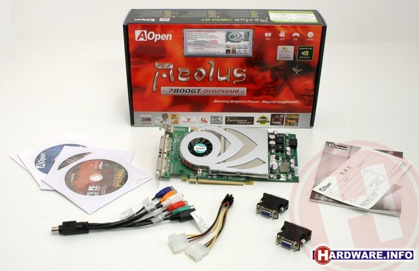 De kaart wordt gebundeld met twee games: Pitfall: The Lost Expedition en Second Sight. Beide helaas geen toptitels, maar leuk om direct aan de slag te gaan. In de doos vinden we verder Ulead DVD-software, een tweetal DVI-naar-D-Sub convertors en een verloopkabel voor de video in- en outputs. Het beste nieuws is nog wel dat AOpen met haar GeForce 7800 GT een prijsoffensief wil beginnen: de adviesprijs van € 399 is duidelijk lager dan de 7800 GT kaarten van de andere merken.