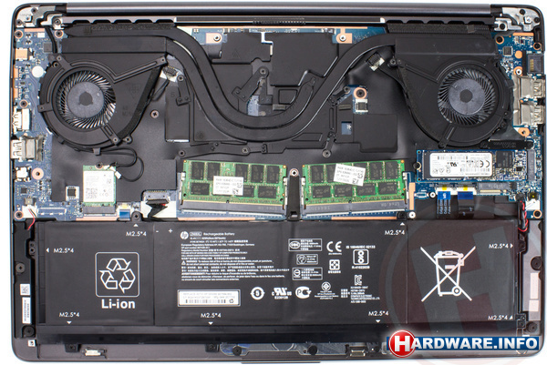 Ons testmodel was uitgerust met twee DDR4-2400 geheugenmodules van 16 GB per stuk. Met 32 GB kun je, ook bij zwaardere toepassingen, prima uit de voeten. De ZBook is eenvoudig open te maken en dat betekent dat je de belangrijkste onderdelen zoals geheugen, schijven en WiFI-module eenvoudig kunt uitwisselen.