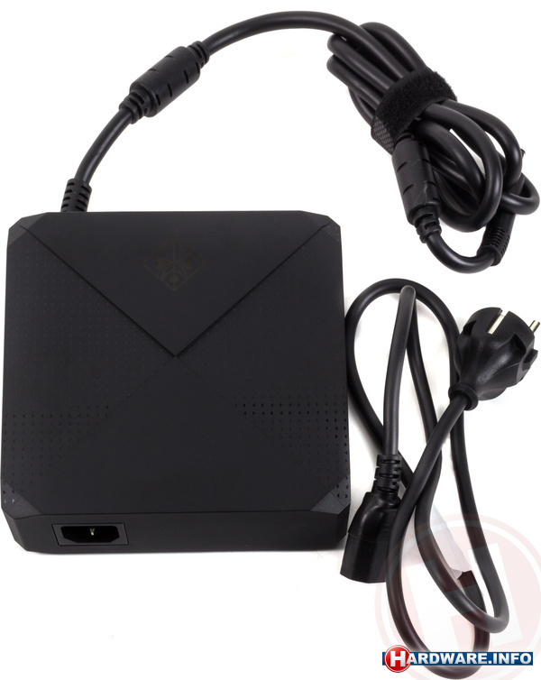 De meeste laptops in deze klasse hebben een voeding in de vorm van een flinke baksteen. Deze Omen X heeft een voeding die eerder vierkante is. Bijzonder, en aanvankelijk doet het meer aan een dock denken: er zou prima een extra schijf of andere toevoegingen in ondergebracht kunnen worden. Dat is echter niet het geval.