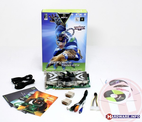 Voor XFX heeft de GeForce 7800 GTX 512 MB maar één probleem: hij is te groot en te dik om in de gebruikelijke X-vormige dozen te passen. Vandaar dat de nieuwe kaart wordt geleverd in een uit de kluiten gewassen vierkante doos, samen met de games FarCry, X2: The Threat en MotoGP Ultimate Racing Technology 2. Een verloopkabel voor alle video in- en uitgangen mag uiteraard ook niet missen. De prijs van de kaart is even slikken: de XXX-editie gaat zo'n € 679 kosten... Wil je je twee tientjes besparen, dan komt er ook een 'gewone' uitvoering die op nVidia referentie kloksnelheden draait, 550 MHz / 1700 MHz.