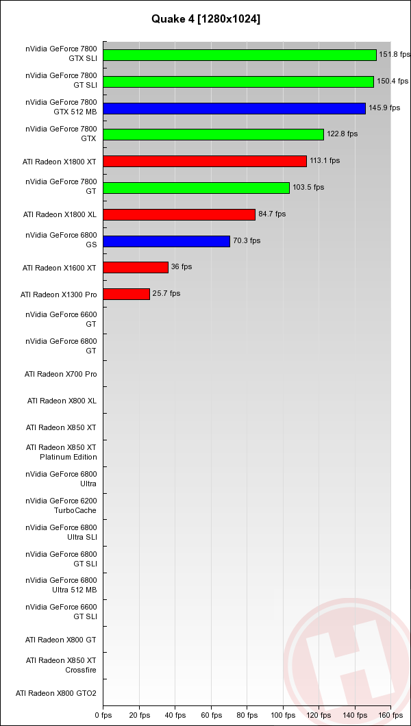 Quake 4 is recent uitgebracht en volledig gebaseerd op de Doom 3 engine. De scores zijn dan ook vergelijkbaar met wat we twee pagina's eerder bij Doom 3 zagen. Helaas hebben we nog niet alle videokaarten van Quake 4 scores kunnen voorzien.