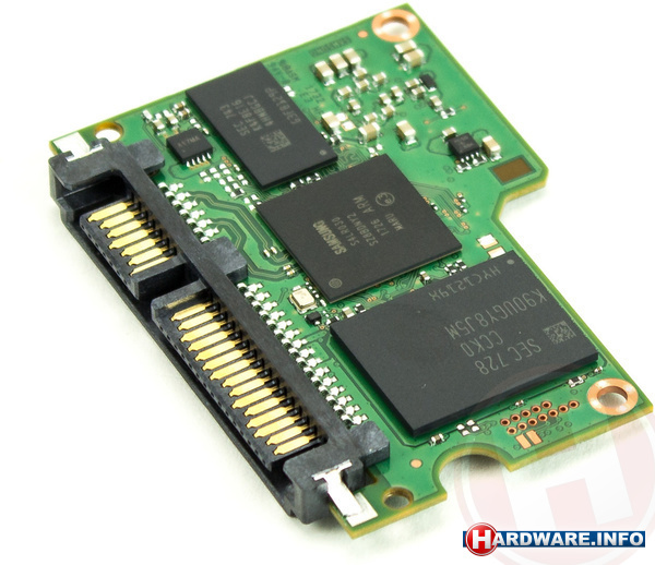 Van boven naar beneden: de dram-cache, de ssd-controller en een geheugenchip.