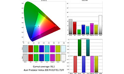 De gemiddelde kleurafwijking is in vergelijking wat minder slecht dan de gemiddelde grijsafwijking, al zijn het geen van alle schermen die je goed kunt gebruiken voor fotobewerking. Iets wat ook opvalt is de slechte srgb-dekking van de geteste schermen - de scores komen uit tussen de 88 en 95 procent, waar de meeste goede ips-panelen een nagenoeg volledige dekking van het srgb-gamut bieden. Vooral de primaire kleuren van de schermen van de Acer Aspire A717, Medion Erazer X7851 en BTO 17CL75 staan ten opzichte van de srgb-standaard wat 'uit het lood', waardoor kleuren er niet helemaal uitzien zoals de bedoeling is.
