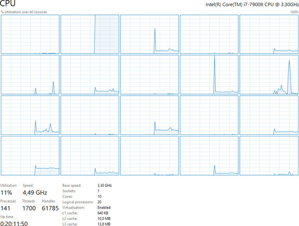 Dan is er nog de Core i9 7960X met nog twee extra cores voor 1613 euro, en voor 18 cores en 36 threads in de vorm van de Intel Core i9 7980XE mag je gemiddeld 1910 euro neertellen. Voor dat bedrag kan menig hardwareliefhebber met gemak een luxe allround computer samenstellen. Ook deze meest luxe processors komen echter niet verder dan 44 pci-e lanes en net geen 25 MB L3-cache. De nadruk ligt bij deze prijzige parels echt op de cpu-prestaties, en het combineren van een groot aantal behoorlijk snelle cores in één package. Voor de professionele gebruiker van extreem veeleisende toepassingen kunnen processors zoals de Core i9 7980XE echter interessant zijn en kan de verkoopprijs gerechtvaardigd worden. Zo heb je bijvoorbeeld bij renderen van een project dat twee weken duurt met zeven procent hogere multi-core prestaties al een dag winst. In specifieke workloads kan dus zelfs een dergelijk dure processor zichzelf terugbetalen.