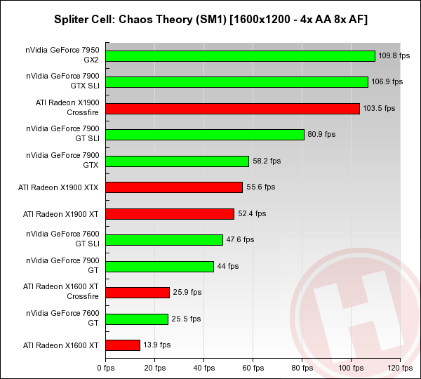 nVidia GeForce 7950 GX2 Koen Crijns 8 juni 2006 14:09 1 besproken product Inhoudsopgave 1. Inleiding 2. Extra foto's 3. Sparkle GeForce 7950GX2 4. Alternate 5. Benchmarks - 3DMark 05 6. Benchmarks - 3DMark 06 7. Benchmarks - Doom 3 8. Benchmarks - FarCry 9. Benchmarks - Quake 4 10. Benchmarks - Serious Sam II 11. Benchmarks - Splinter Cell Chaos Theory 12. Benchmarks - Chronicles of Riddick 13. Conclusie 1 besproken product Benchmarks - Splinter Cell Chaos Theory Volgende pagina: 12. Benchmarks - Chronicles of Riddick Advertentie 1 besproken product Vergelijk Product Prijs Nvidia GeForce 7950 GX2 G71 500 MHz 1024 MB 512 bit DirectX 9.0c PCI-Express x16 Niet verkrijgbaar