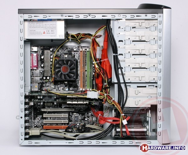 Het systeem zoals we dat van Alternate ontvingen was bedoeld om de nieuwste producten te showen. Het geheel was samengebouwd in een Procase Zirco behuizing, die wel wat weg heeft van een mini-uitvoering van de CoolerMaster Stacker. Zo maakt het systeem gebruik van het nieuwe AM2-platform van AMD. Alternate koos voor een AMD Athlon 64 X2 4800+, in combinatie met het nieuwe MSI K9N Platinum SLI moederbord. Dat moederbord is gebaseerd op de nForce 570 SLI chipset. Deze biedt één PCI-Express x16 slot en één PCI-Express x8 slot. De duurdere nForce 590 SLI biedt twee x16 sloten. MSI heeft voor een passieve koeler gekozen op de chipset, die tijdens het gebruik wel erg warm wordt, om die reden zouden we er voor kiezen om bij aanschaf van een dergelijk systeem in iedergeval een casefan te plaatsen.