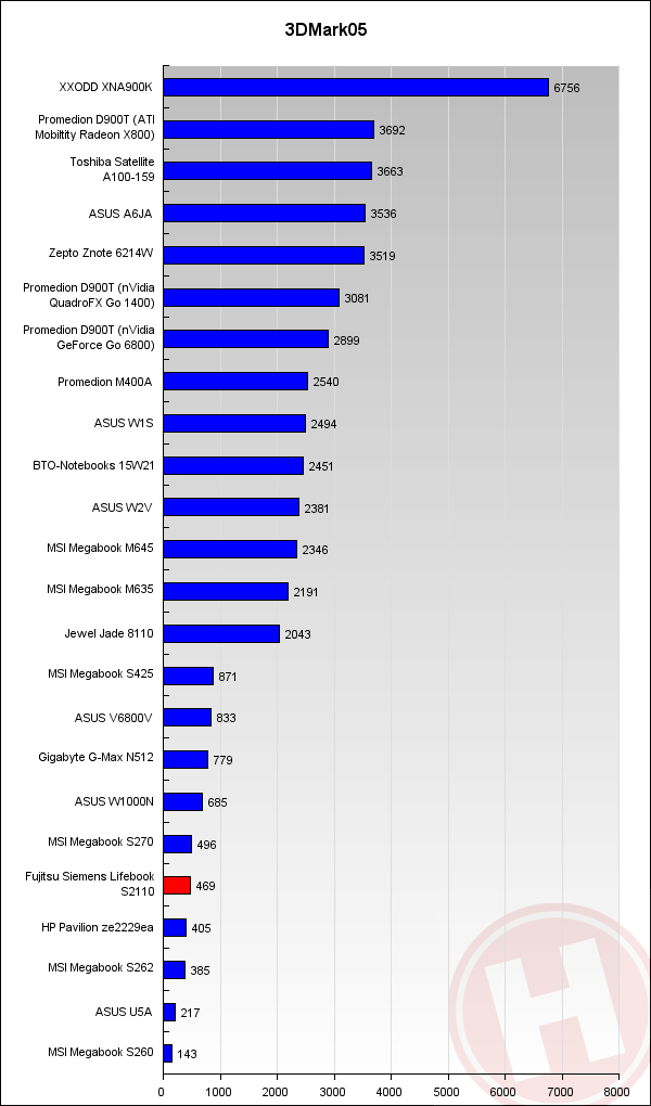 Fujitsu Siemens Lifebook S2110 Frank Everaardt 27 juli 2006 09:44 1 besproken product Inhoudsopgave 1. Zakelijke Turion 64 2. Specificaties 3. Benchmarks - 3DMark 2001SE 4. Benchmarks - 3DMark 03 5. Benchmarks - 3DMark 05 6. Benchmarks - 3DMark 06 7. Benchmarks - PCMark 04 8. Benchmarks - PCMark 04 (vervolg) 9. Benchmarks - PCMark 05 10. Benchmarks - MobileMark 1 besproken product Benchmarks - 3DMark 05 Volgende pagina: 6. Benchmarks - 3DMark 06 Advertentie 1 besproken product Vergelijk Product Prijs Fujitsu Siemens Lifebook S2110 AMD Turion 64 ML-37 1 GB 13.3 inch 1024x768 100 GB 1.85 kg Niet verkrijgbaar