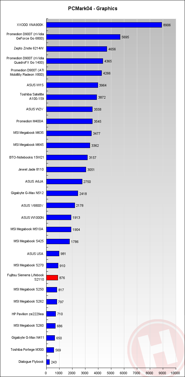 Fujitsu Siemens Lifebook S2110 Frank Everaardt 27 juli 2006 09:44 1 besproken product Inhoudsopgave 1. Zakelijke Turion 64 2. Specificaties 3. Benchmarks - 3DMark 2001SE 4. Benchmarks - 3DMark 03 5. Benchmarks - 3DMark 05 6. Benchmarks - 3DMark 06 7. Benchmarks - PCMark 04 8. Benchmarks - PCMark 04 (vervolg) 9. Benchmarks - PCMark 05 10. Benchmarks - MobileMark 1 besproken product Benchmarks - PCMark 04 (vervolg) Volgende pagina: 9. Benchmarks - PCMark 05 Advertentie 1 besproken product Vergelijk Product Prijs Fujitsu Siemens Lifebook S2110 AMD Turion 64 ML-37 1 GB 13.3 inch 1024x768 100 GB 1.85 kg Niet verkrijgbaar