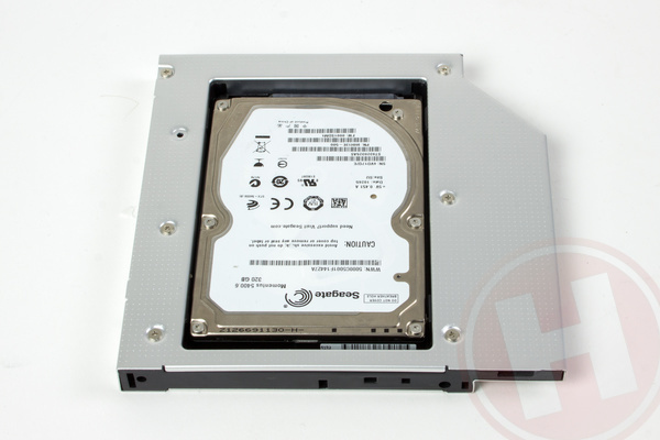 Op het internet kun je bij diverse partijen terecht voor een bracket die je in staat stelt om een 2,5 inch schijf in de bay voor de optische drive te plaatsen. Let er wel op dat je het juiste formaat bracket koopt, zoals beschreven op de pagina 'Wat heb je nodig?'. Ons exemplaar is afkomstig van het merk Orico. Bij het uitpakken zie je meteen wat je moet doen, omdat in het slot waar de harde schijf in past, een gebruiksaanwijzing staat geprint. Ook handig: de bracket bevat een piepklein, meegeleverd schroevendraaiertje, zodat je de kleine bevestigingsschroefjes voor de harde schijf kunt bereiken. Vreemd is dat de 12,7 cm bracket die wij gebruiken maar twee schroefjes bevat, hoewel aan de zijkant wel vier schroefgaten zitten.