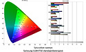 De Samsung U28H750 is de wat luxere tegenhanger van de immens populaire U28E590D. Het grote verschil is dat de H750 gebruik maakt van een backlight met quantum dots, qled in Samsung-jargon. Dat moet zorgen voor meer verzadigde kleuren en inderdaad kunnen we dit scherm probleemloos met de dci-p3 kleurruimte testen. Daar dekt hij een niet onaardige 91% van, niet zoveel als sommige concurrenten, maar die zijn dan ook een stuk duurder dan de pakweg 400 euro die je voor deze Samsung mag neertellen.