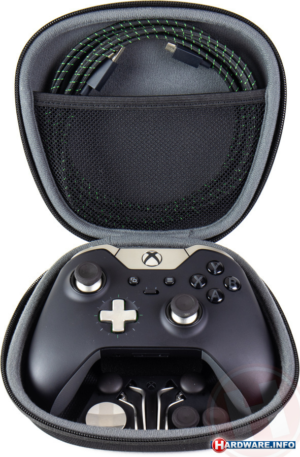 Wat de Elite pas echt bijzonder maakt is echter de leveromvang, zowel fysiek als qua software. Je krijgt er een luxe draagtas bij, met een opbergvak voor de kabel en tal van accessoires. Zo kun je de kruisvormige, metalen d-pad vervangen door een compleet ronde knop, worden er twee sets alternatieve tops voor de thumbsticks meegeleverd (waaronder beduidend langere versies) en krijg je in totaal vier metalen paddles die je op de achterkant kan monteren. Daarmee beschik je feitelijk over vier extra knoppen die je met je middel- of ringvinger kan bedienen. Alle uitwisselbare onderdelen zitten met magneetjes vast: stevig, maar eenvoudig te wisselen.