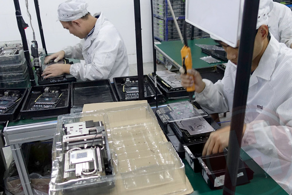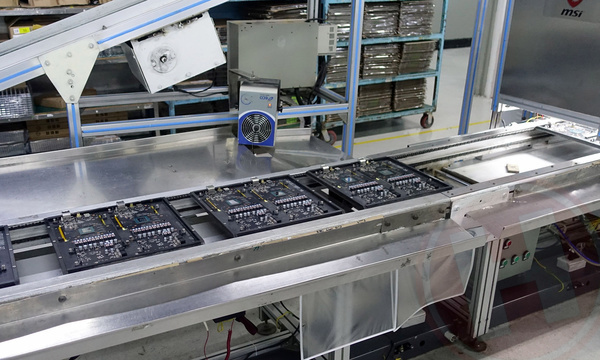 In een groot aantal 'zijstraatjes' op de productielijn heeft MSI vele opstellingen waarop de nieuwe videokaarten kunnen worden getest. Ze doorlopen een gestandaardiseerd testprotocol om te controleren dat ze beeld geven, correct werken en dat ook de koeling naar behoren functioneert.
