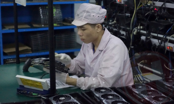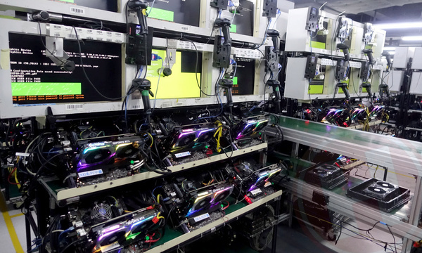 Werken de kaarten zoals zou moeten, dan volgt nog een laatste inspectie, de anti-statische verpakking en het in de doos plaatsen. De dozen worden weer in omdozen verpakt, die worden gewogen. Dat heeft een belangrijke functie: komt het gewicht niet overeen met de juiste waarde, dan zijn er te weinig of te veel zaken verpakt - bijvoorbeeld kabels, documentatie of andere papieren. Is het gewicht correct, dan kan de doos met meerdere RTX 2080 Ti's op de pallet voor verzending.