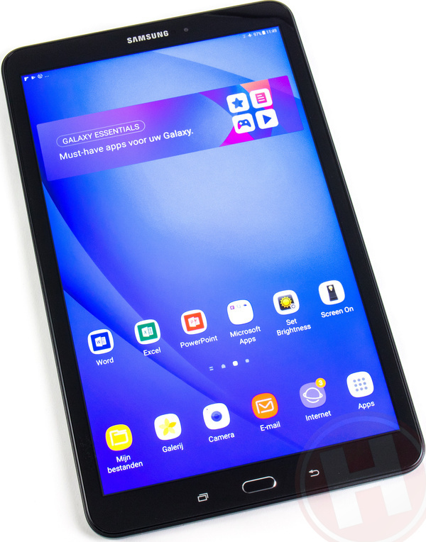 Met 525 gram is de Galaxy Tab A 10.1 redelijk zwaar. Waarschijnlijk vormt de grote 7300 mAh-accu de verklaring. Die maakt dat de tablet gemiddeld genomen het langst meegaat. Zowel in de videotest als bij webbrowsen noteren we een uitmuntende looptijd. Op zowel de Galaxy Tab A 10.1 als de Tab S3 vind je een versie van Android die er net als bij Samsungs smartphones anders uitziet dan stock, inclusief een aangepaste launcher en allerlei eigen apps. De stijl is weliswaar prima afgewerkt, maar strookt nog steeds niet met de rest van het OS.