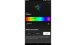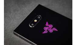 Onder de dubbele cameramodule en flitser, die licht uit de behuizing steken en ditmaal in het midden van de behuizing zijn geplaatst, treffen we nog het Razer-logo. In tegenstelling tot bij de eerste Phone zit er nu een rgb-ledje achter verwerkt, zodat het in alle kleuren van de regenboog kan oplichten. Je stelt de verlichting in middels de prominent op het homescreen aanwezige 'Chroma'-app, waarbij je naast een statische kleur kunt kiezen uit twee effecten. Het lampje kan ook reageren op binnenkomende notificaties. De maximale helderheid is behoorlijk hoog, net als bij Asus genoeg om het effect ook bij daglicht duidelijk te kunnen zien.