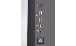 Net als bij de 678C treffen we de externe aansluitingen aan de (mat plastic) bovenzijde aan. Ze zitten net even in een andere volgorde, maar het zijn wel dezelfde: twee keer usb type-a 3.1 gen1, een keer usb-c met 3.1 gen2, een gecombineerde headset-aansluiting en zowel een reset- als een powerknop. Op zich een mooie selectie, al zouden we op een behuizing van 250 euro ook best wat meer usb-aansluitingen en/of een geheugenkaartlezer waarderen.