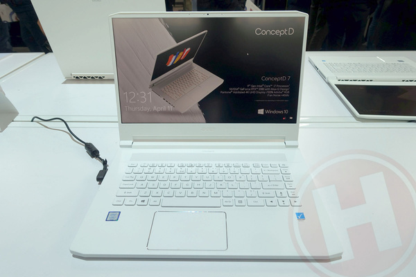 De ConceptD 7 is gebaseerd op hetzelfde platform als de Predator Triton 500, met hetzelfde gewicht van 2,1 kilo, RTX-videokaart (2060, of 2080 Max-Q), tot 16 GB geheugen en 1 TB nvme ssd. De ConceptD 7 is echter voorzien van een 9e generatie Intel Core-processor en wederom een heel ander beeldscherm. Ook hier is dat een 15,6-inch ultra hd-exemplaar met 400 nits helderheid, Pantone-certificering en een delta E-waarde kleiner dan 2.