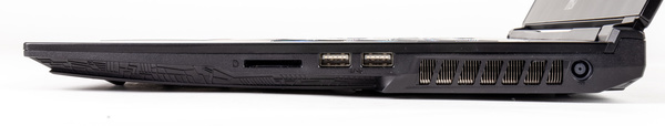 Voorbij de beeldaansluitingen treffen we een tweetal usb-poorten, waarvan één type A en één type C. De 'usb 3.1 gen 2'-poorten bieden een theoretische doorvoersnelheid van maximaal 10 gigabit per seconde, dubbel zoveel als de twee usb type A-poorten aan de rechterkant, die blijven steken op usb 3.1 gen 1. De usb-c poort is niet geschikt voor doorvoer van beeldsignalen of het opladen van de laptop. Wel kun je via de poort andere apparaten opladen met maximaal 15 W, wanneer de adapter van de laptop is aangesloten (en het aangesloten apparaat een dergelijke snelheid van opladen ook ondersteunt).