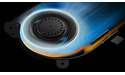 Deze fans zijn 12V-exemplaren (in tegenstelling tot de gebruikelijke 5V-ventilatoren) en bevatten elk 83 schoepen van een speciaal amalgaam van vloeibare kristallen en polymeren. Ze zijn zo ontworpen dat stof door centrifugaalwerking naar een apart kanaal wordt afgevoerd, terwijl warme lucht zowel opzij als naar achteren wordt geleid. Dat gaat onder een lichte hoek naar boven, om de warme lucht niet te mengen met koele lucht die vanaf de onderzijde wordt aangezogen.