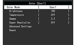 In het volledige schermmenu, te bereiken met een druk op 'Enter', vind je tot slot nog een selectie aanvullende instellingen. Zo kun je (voor sdr-content) onder meer het gamma en de kleurtemperatuur aanpassen. Je kunt ook tint, verzadiging en de individuele kleurkanalen (rood, groen, blauw) aanpassen. Bijster geavanceerd zijn de opties voor de gebruiker daarmee niet, terwijl een colorimeter ook geen toegang heeft tot het ingebouwde cms - over een mogelijkheid voor hardwarekalibratie beschikt het scherm niet. Ook al is de kalibratie van Eizo-schermen af fabriek vrijwel altijd erg goed, het was toch fijn geweest als de Foris Nova die mogelijkheid wel had gehad. Niet alleen zal het scherm na verloop van tijd kleurafwijkingen vertonen vanaf de fabriekskalibratie, waardoor een herkalibratie noodzakelijk wordt; ook was hardwarekalibratie bruikbaar geweest om de kleurruimte van het scherm naar wens bij te kunnen regelen. Naast drie standen waarin het volledige brede kleurbereik van het scherm wordt gebruikt, is er verder enkel een sRGB-modus voorhanden. Wil je bijvoorbeeld met AdobeRGB-materiaal aan de slag, dan zal de kleurconversie dus in software moeten plaatsvinden.