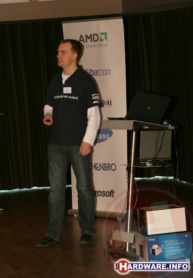 Afgelopen maandag organiseerden we samen met Microsoft en AMD op het Mediapark in Hilversum het Home Server Event. Geïnteresseerden konden alles te weten komen over het nieuwe besturingssysteem en de hardware die daarvoor nodig is. 's Middags was het evenement toegankelijk voor dealers, 's avonds waren consumenten aan de beurt. In beide gevallen waren er presentaties van Tony Krijnen van Microsoft over de werking van Home Server en van Koen Crijns van Hardware.Info over het zelf bouwen van een Home Server met de juiste componenten. Op een mini-beurs toonden zo'n twintig hardware leveranciers welke producten zij in het assortiment hebben voor thuisservers. Zowel overdag als 's avonds werden onder de bezoekers kant-en-klare Home Servers verloot.