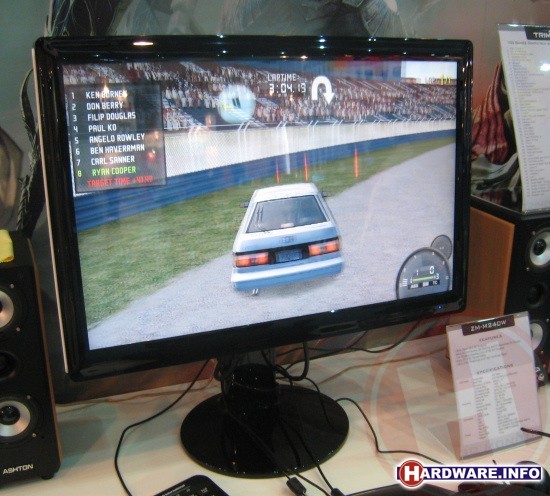 In Hardware.Info Magazine #1/2008 publiceerden we een uitgebreide test van Zalmans Trimon 3D-monitoren. Binnenkort zal een geupdate versie van dat artikel op de site verschijnen. Op dit moment zijn de speciale 3D-monitoren verkrijgbaar in 19" en 22" afmetingen. Op haar Computex stand toonde Zalman een binnenkort verschijnend 24" model. Over de te verwachten prijs kon men helaas nog geen uitspraken doen.