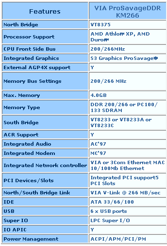 VIA heeft vandaag de ProSavageDDR KM266 chipset aangekondigd. Deze chipset is geschikt voor SocketA CPU's van AMD en DDR geheugen, en heeft een geïntegreerde S3 ProSavage8 videochip die volgens VIA effectief over een bandbreedte van AGP8x beschikt. Verder vinden we zaken als Ultra ATA-133 terug in de southbridge VT8233A die ondersteuning biedt voor BigDrive harddisks (groter dan 137GB). Er kan maximaal 4 GB aan geheugen worden aangestuurd. De nieuwe chipset wordt volgens het 0,22 micron procédé gefabriceerd, en is voor OEM's per direct beschikbaar.