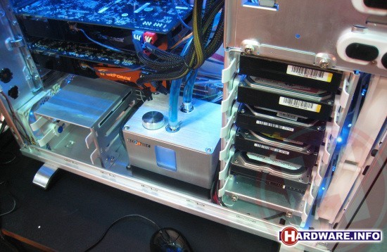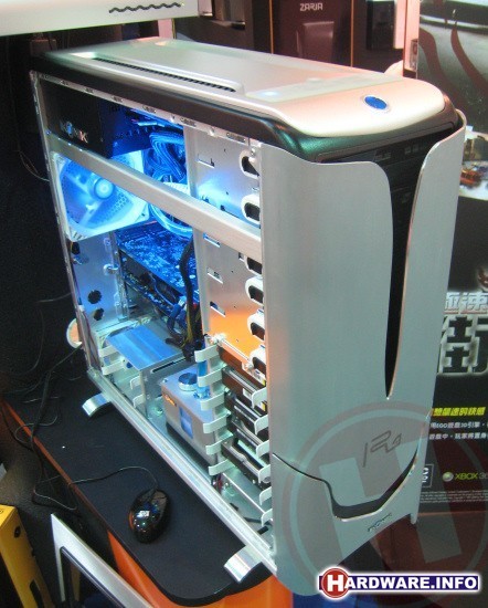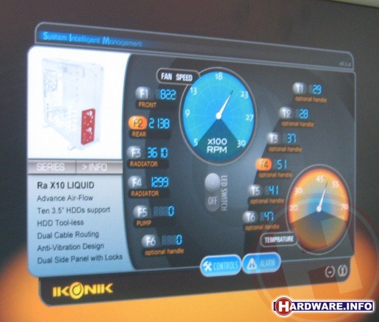 Eén van de nieuwe deelnemers aan de Computex 2008 beurs is kastenontwerper Ikonik. Je hebt er waarschijnlijk nog nooit van gehoord, maar dit merk komt absoluut niet uit het niets. Naar verluid hebben hoofdontwerpers van de kasten- en voedingentak van Gigabyte begin dit jaar ontslag genomen en zijn met hulp van een aantal investeerders een nieuw merk begonnen. De eerste high-end behuizing van Ikonik is de Ra 10 en het zal niemand verbazen dat deze behuizing heel wat Gigabyte-achtige invloeden heeft. De kast heeft een strak uiterlijk met aluminium frontpaneel. Aan de binnenkant zijn er diverse voorzieningen om assemblage zo eenvoudig mogelijk te maken. Ook heeft men ervoor gezorgd dat alle kabels eenvoudig weggewerkt kan worden. Optioneel wordt de kast geleverd met een waterkoelingssysteem, waarbij het reservoir netjes onderin de behuizing is weggewerkt. Uniek is dat de behuizing een controller aan boord heeft, die je via USB op je moederbord kunt aansluiten. Eveneens uniek is dat je dan via software onder andere alle fans, maar ook de werking van de waterkoeling kunt regelen.