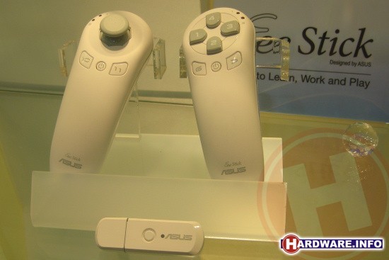Gejat van Nintendo? Het zal moeilijk te ontkennen zijn. Speciaal voor gebruik bij een Eee PC of Eee Box - al doet 'ie het ook net zo goed op een 'normale' PC - komt ASUS met de Eee Stick. De naam W-Eee Stick was gewoon beter geweest, want de gelijkenissen met de controller van Nintendo's Wii zijn gigantisch. Ook de Eee Stick is een combinatie van een gyroscoop module en een tweede met mini-joystick. Het was natuurlijk een kwestie van tijd eer iemand een derivaat van de populaire Nintendo controller naar het PC platform zou brengen.