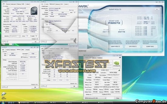 Met deze overgeklokte configuratie werd vervolgens een 3DMark Vantage sessie doorlopen met de 'Performance' preset. Hier rolde uiteindelijk een score uit van maarliefst 32.573 punten. Het record voor 3D Mark Vantage staat nog boven de 36.000, een score die werd behaald met een hoger geklokte Core i7 processor en drie stikstof-gekoelde GTX 280 kaarten in Triple SLI.