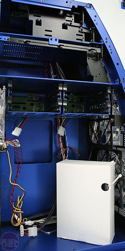 Vanwege de vorm van de behuizing zijn er gescheiden compartimenten gebouwd voor de verschillende onderdelen. Onderin de kast is ruimte voor het moederbord en alle bijbehorende componenten, terwijl er aparte rekjes zijn gemaakt voor de harde schijven en de voeding. Optische drives worden boven in de behuizing geplaatst, want aan de onderzijde is ruimte gemaakt voor extra ventilators. Ook is er voldoende ruimte gemaakt om kabels weg te werken en om zelfs een waterkoeling te installeren.