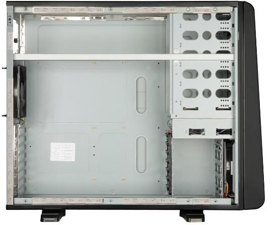 De kast heeft aan de voorkant en aan de zijkant een slot om te voorkomen dat er op een onoplettend moment hardware uit het systeem verdwijnt. De airflow wordt verzorgd door een 120 mm ventilator aan de voor- en achterzijde van de behuizing, waarbij de voorste is voorzien van een stoffilter. In het linker zijpaneel van de kast is een soort venster gemaakt, waarachter een mesh filter schuilgaat. Door dit filter heen kan men een blik werpen op het binnenwerk en kan er frisse lucht het systeem in gezogen worden.